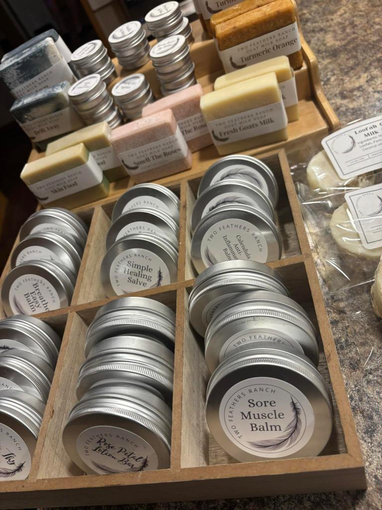 Featuring Two Feathers Ranch. They are two sisters raise their own stock of Nigerian Dwarf goats producing quality goat milk soaps, balms and lotions in a sustainable manner.