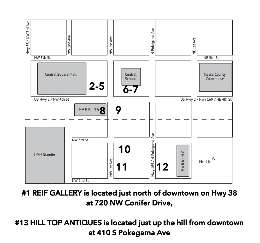 Artist Susan Kattas, formerly of Grand Rapids, will be featured with her works in collage and poured acrylic. Susan, retired from teaching studio art and art history at Inver Hills Community College, will be present to greet visitors and talk about her artwork using recycled materials like address labels and bottle corks.